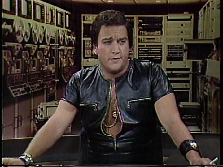 Most of the comedy comes from the disconnect between Short’s character’s appearance (half-shirt, beer gut, and a bandaid on his thumb) and decidedly unglamorous lifestyle (including a $475 Plymouth Valiant), and his approximation of Kate Hepburn’s patrician voice and mannerisms, though there are some good bits in the interview (reselling a hot dog that Dom DeLuise choked on, his Sunday ritual involves eating a huge bowl of bran and being indisposed for three hours). Short also gets his first of many chances to demonstrate his knack for physical comedy with a small bit of physical business involving his stand’s umbrella.