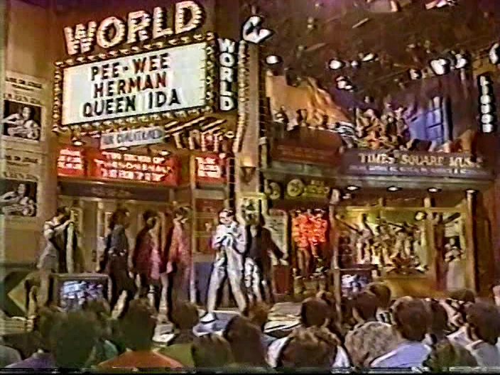 Rerun alterations: Moderate audience sweetening, Don Pardo’s introduction of Pee-wee mixed forward.