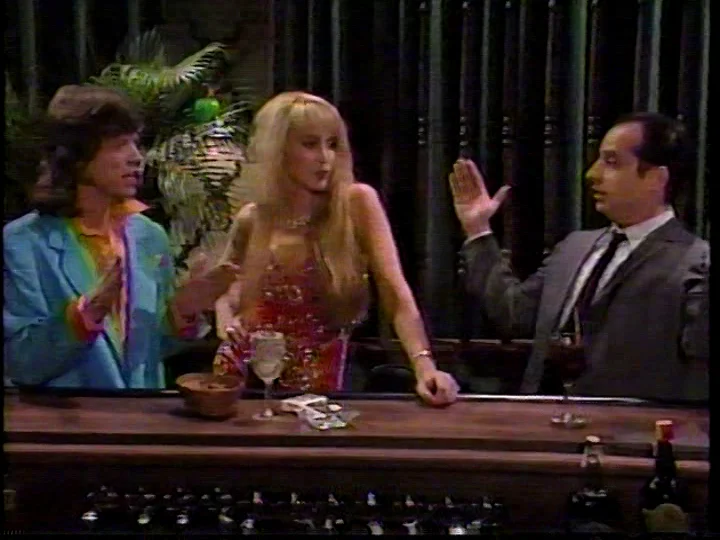 Rerun alterations: The second half of the sketch is replaced by the dress rehearsal take; the big visual tell is that the drinks on the bar suddenly disappear, but Jagger also wears a different shirt in the dress version. He also mugs a little bit for the camera during his entrance (you can also hear a camera shutter clicking and see a flash go off at one point) and his “yeah, that’s the ticket” gets a bigger response here.