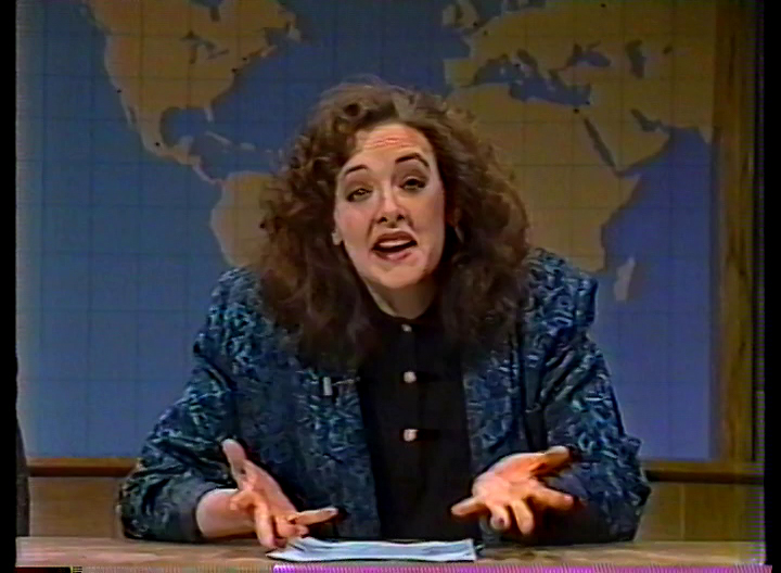 The fourth Liar sketch in as many shows, but it works; as much as the show tended to overuse the character, there were usually some solid lines in each sketch, Lovitz always got laughs, and it was one of those bits that could be used in so many different contexts. I particularly liked Flanagan’s insistence that the commercial was a “news bulletin” about a “hailstorm” of Tic-Tacs, and his promise to have the man responsible “fir…er, flogged”. I’m also enjoying Sweeney’s sucking up (“You made those actors look so professional!”).
