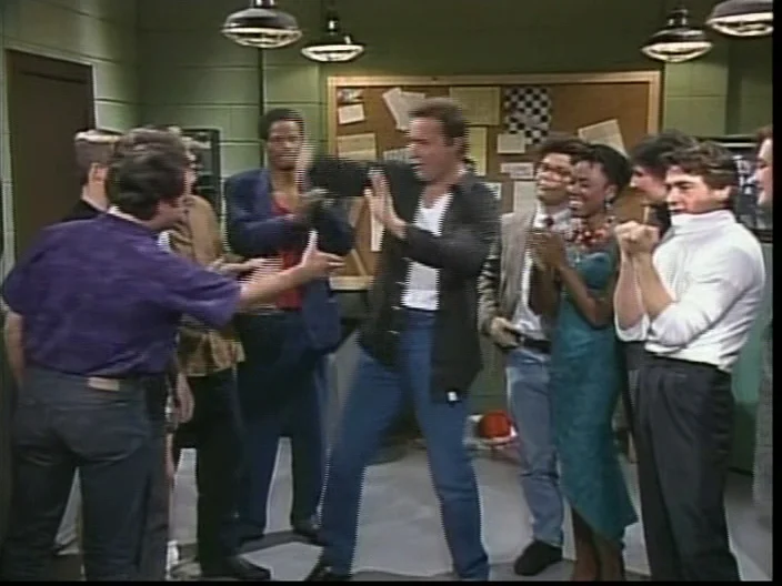 Anthony Michael Hall’s appearance was particularly rough; what could have been an amusing bit with Reggie Jackson’s ball was undermined by his screwing up his line (“My business manor”) and constant coughing/throat-clearing.