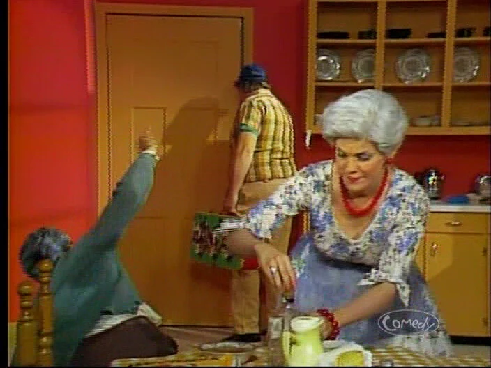 A strong outing for Earl and Floyd, ably assisted by the returning Donald Cowper. Highlights include Earl Jr. struggling to read Afrikaans terms in an item about South Africa (Earl: “It’s just African politics, nobody really cares anyway”) and asking “Who’s this creep, dad?”, Floyd’s reaction after realizing they went on the air live, and him throttling the boy after he tells him about the rumour going around about his sexuality.