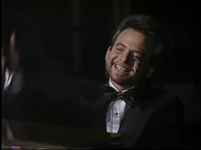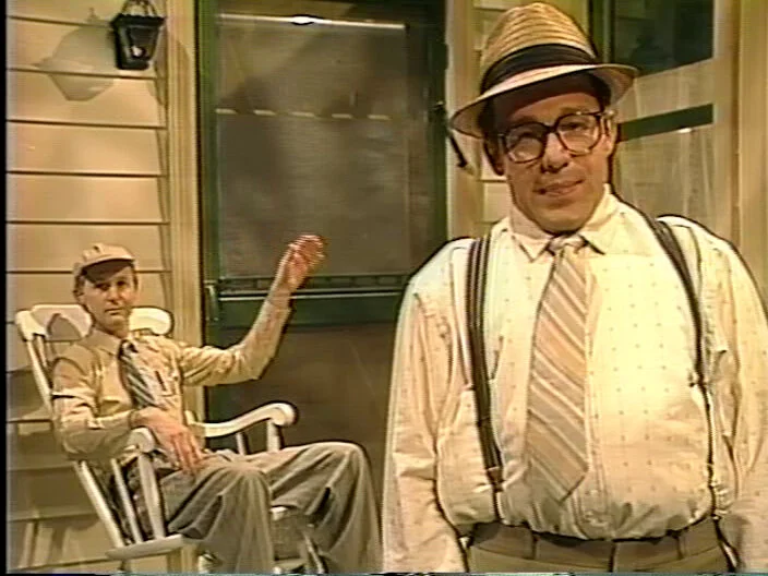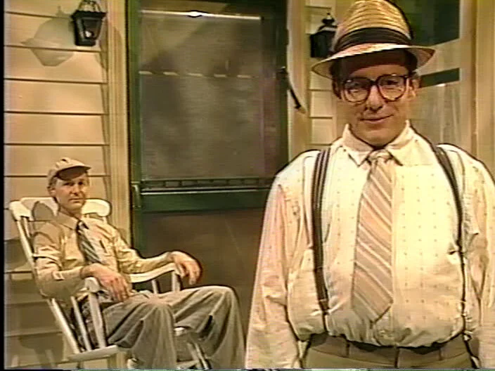 Written by Nora Dunn, Jan Hooks, and Marc Shaiman, who also appears on-camera as the Sweeneys’ accompanist Skip St. Thomas. I wouldn’t be surprised if Nealon also helped with the framing device.