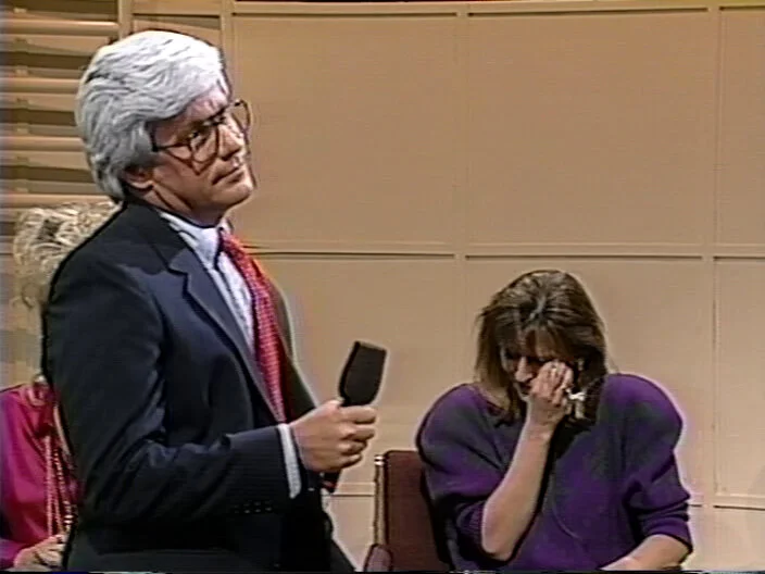 Phil’s (Phil Hartman) guests are two women (Victoria Jackson and Jan Hooks) trapped in exploitive relationships and a psychologist (Nora Dunn) who gives insight.