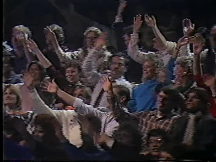 Rerun alterations: Mild audience sweetening. Applause from the end of Team Xynex mixed over beginning. Some dead air removed before theme song and phone call, as well as a shot of the audience before the call. Nora Dunn’s first answer is from dress rehearsal, as well as the portion where Jan Hooks asks about dating members of the audience.