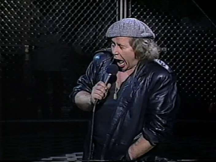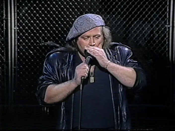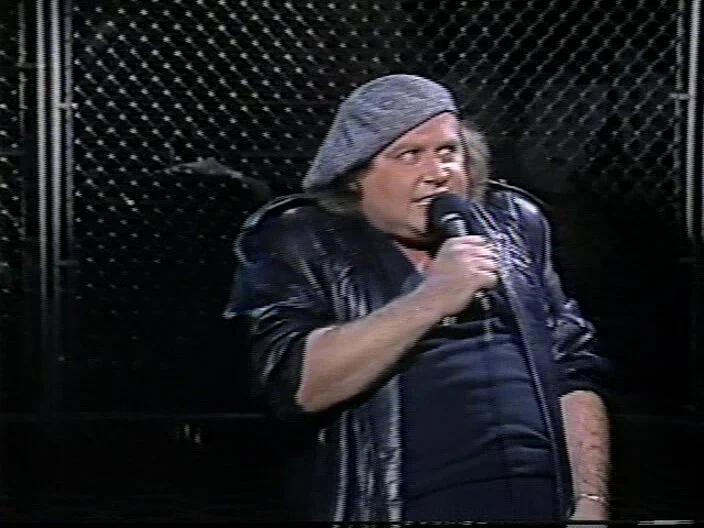 Sam Kinison does stand up about fans screaming at him, growing up, the drug war and televangelists.
