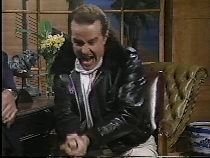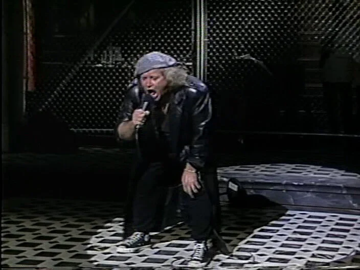 This routine is also notable for two controversial parts that were censored for the West Coast and repeat airings: the first is Kinison doing a bit that wasn’t in rehearsal talking about the War On Drugs, the lack of pot availability, and the crack epidemic (“We’ll stop smoking crack if you give us the pot back!”); the second is Kinison’s joke (which the censors asked him to cut after dress) about the last thing Jesus actually said to anybody (*hammers stage with microphone “AAAAAAH!”). For the West Coast airing, the censors cut the picture and sound and showed a cast photo from the previous year. The repeat edit is more interesting: while the Jesus’s last words joke is just cut out altogether, the video remains for the longer drug bit but Kinison is muted, and only ambient noise from the studio is heard until the audience’s cheering for the routine.