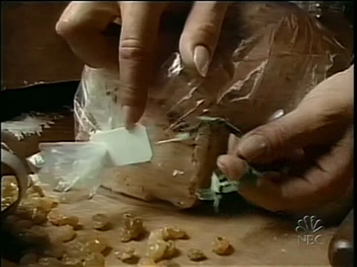 Right at the start of this week’s Update, Dennis Miller says “Never let ‘em see you sweat” (which was the tagline to commercials for Dry Idea anti-perspirant at the time) to huge cheers and applause from the audience. The story is that the Weekend Update set was barely assembled in time before the segment started; the longer-than-usual shot of the rotating Statue of Liberty at the beginning and the hands on the WU set clock spinning fast and backwards support this information.