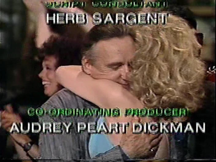 Rerun alterations: Crash/explosion sound effects are added to the ending film clip; audience noise mixed out until “The End” graphic appears. A band shot featuring Cheryl Hardwick and Leon Pendarvis singing “Ebony and Ivory” together is also cut from reruns.