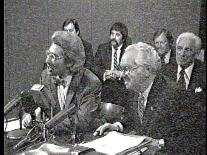 Chuck Clark (Joe Flaherty) ruthlessly interrogates Governor Jerry Brown (Dave Thomas) about his presidential aspirations.